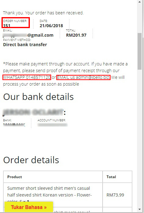 *Please BANKIN the amount you need to pay on our account. After Bankin, send the proof of payment receipt through our WHATSAPP 601118873313 or for FAST response please press >>> PAYMENT PROOF or EMAIL us [email protected] . Please enclose your order ID number for our reference. We will process and ship out your order as soon as possible